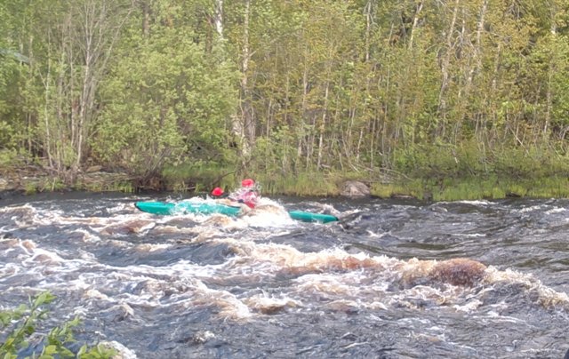 Koskenlaskua kajakeilla kiiminkijoella.Mukavaa pärskettä ja jännitystä 1-luokan koskissa.